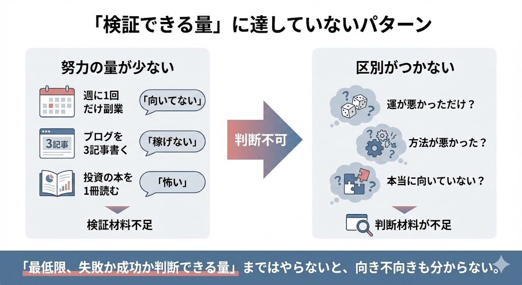 - 週に1回だけ副業を触って「向いてない」と言う