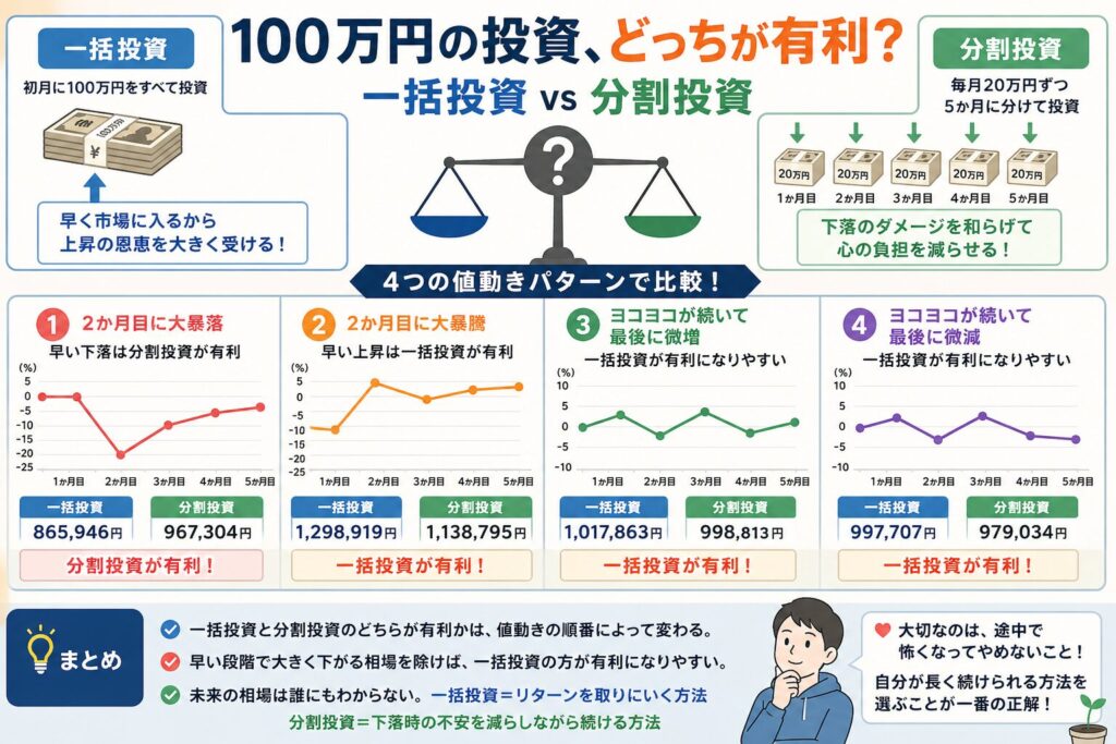 この100万円を最初にすべて投資するのか、それとも毎月20万円ずつ5か月に分けて投資するのか。