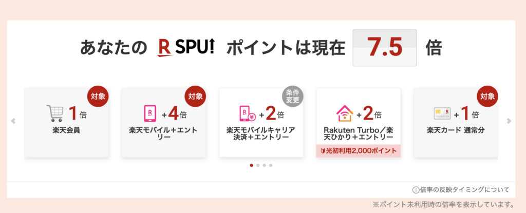 買い回りイベント単体でも十分お得ですが、SPU(スーパーポイントアッププログラム)を使うとさらにブーストします。
